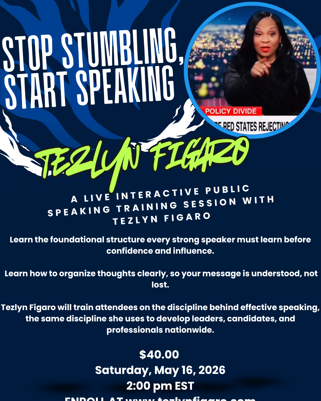 Join Tezlyn Figaro in mastering the art of public speaking. Learn the foundational structure essential for building confidence and influence. Gain insights on organizing your thoughts clearly to deliver impactful messages. Acquire the discipline behind effective speaking used by leaders and professionals nationwide. Take the first step towards becoming a powerful speaker. Enroll now and transform your communication skills!
